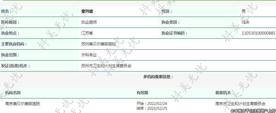 主要執(zhí)業(yè)機(jī)構(gòu):蘇州美貝爾美容醫(yī)院