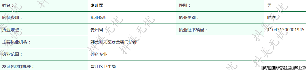 現(xiàn)任銅仁韓美時光醫(yī)療美容執(zhí)業(yè)醫(yī)師