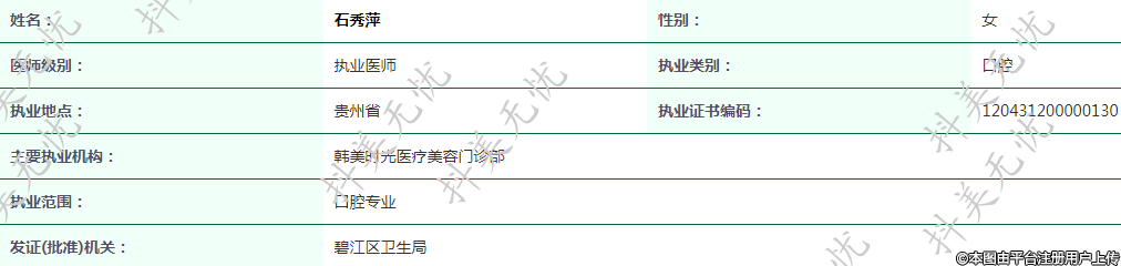 現(xiàn)任銅仁韓美時(shí)光醫(yī)療美容執(zhí)業(yè)醫(yī)師
