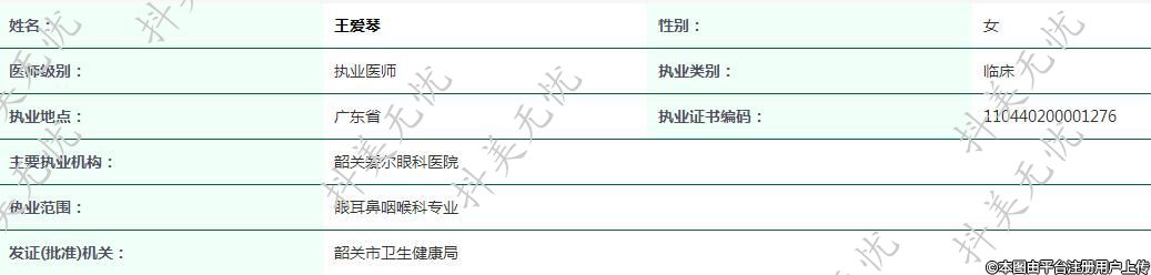 執(zhí)業(yè)范圍:眼耳鼻咽喉科專業(yè)