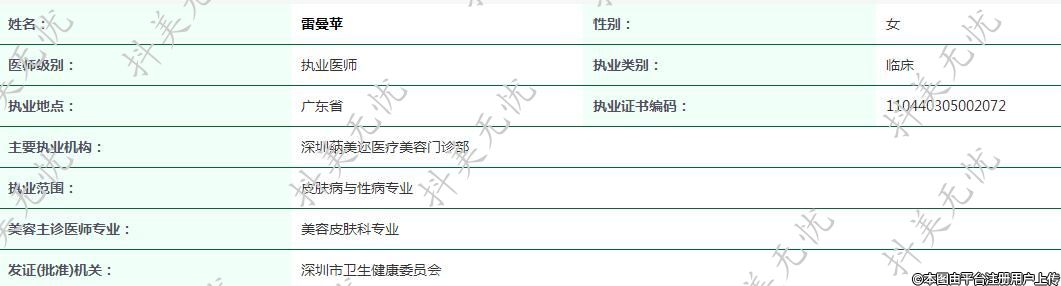 主要執(zhí)業(yè)機構:深圳蒳美邇醫(yī)療美容門診部