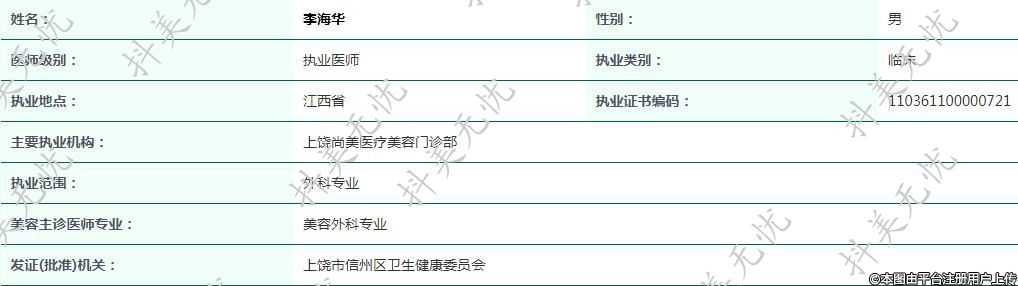 主要執(zhí)業(yè)機(jī)構(gòu):上饒尚美醫(yī)療美容門診部