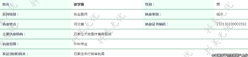 現(xiàn)任石家莊天宏醫(yī)療美容執(zhí)業(yè)醫(yī)師