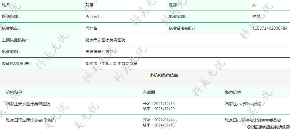 現(xiàn)任石家莊天宏醫(yī)療美容執(zhí)業(yè)醫(yī)師