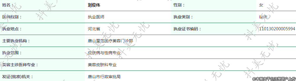 主要執(zhí)業(yè)機(jī)構(gòu):唐山星范醫(yī)療美容門診部