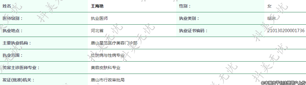 主要執(zhí)業(yè)機(jī)構(gòu):唐山星范醫(yī)療美容門診部
