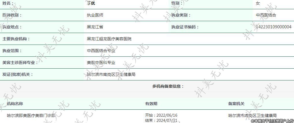 黑龍江超龍醫(yī)療美容執(zhí)業(yè)醫(yī)師