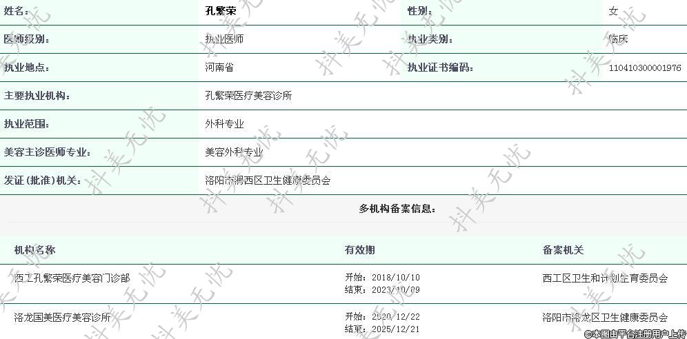 主要執(zhí)業(yè)機(jī)構(gòu):孔繁榮醫(yī)療美容診所