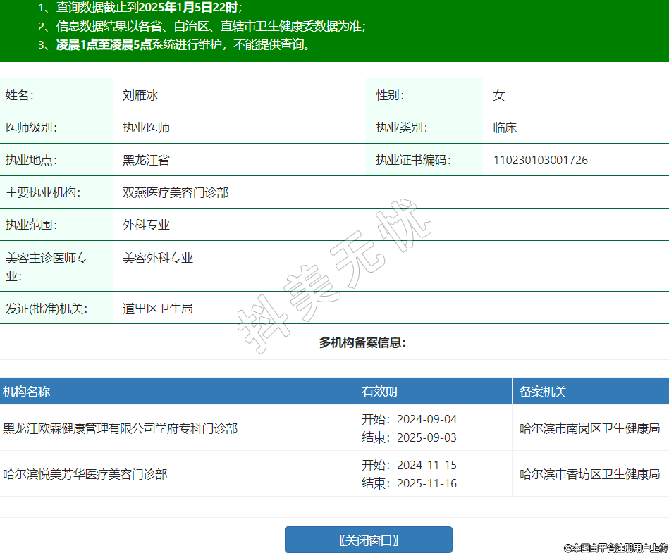 發(fā)證(批準)機關:道里區(qū)衛(wèi)生局