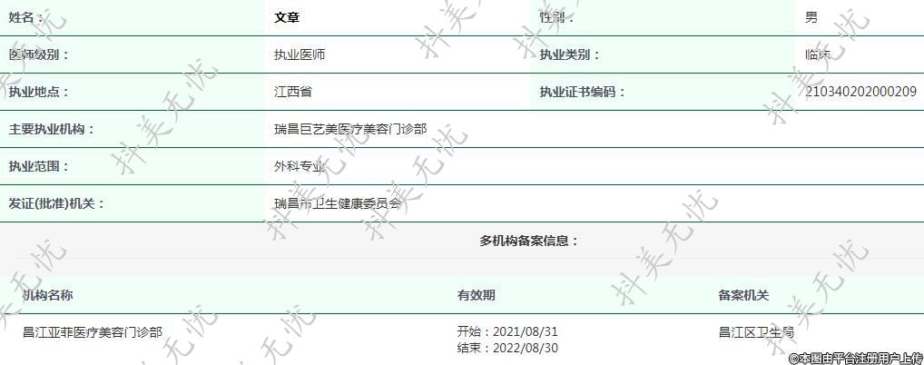 主要執(zhí)業(yè)機(jī)構(gòu):瑞昌巨藝美醫(yī)療美容門診部