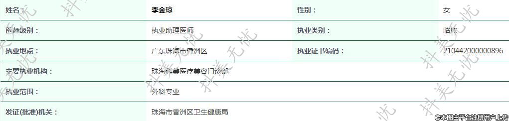 主要執(zhí)業(yè)機(jī)構(gòu):珠??泼泪t(yī)療美容門診部