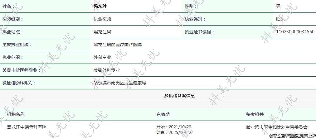 主要執(zhí)業(yè)機(jī)構(gòu):黑龍江瑞麗醫(yī)療美容醫(yī)院