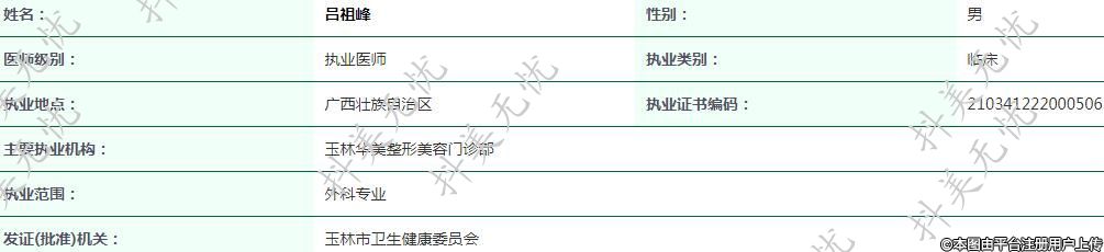 主要執(zhí)業(yè)機構:玉林華美整形美容門診部