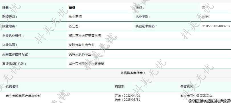 主要執(zhí)業(yè)機構:椒江藝星醫(yī)療美容醫(yī)院