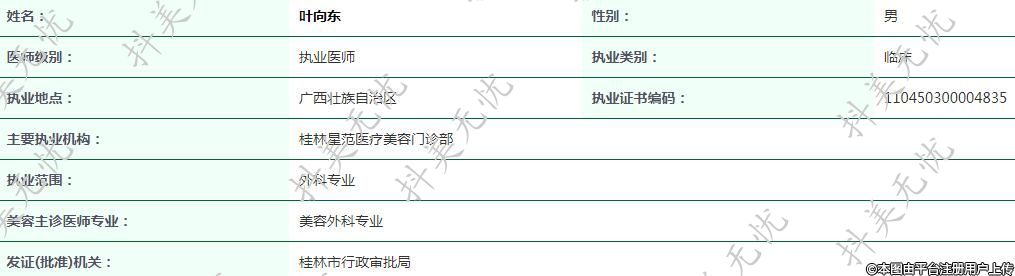 主要執(zhí)業(yè)機構(gòu):桂林星范醫(yī)療美容門診部