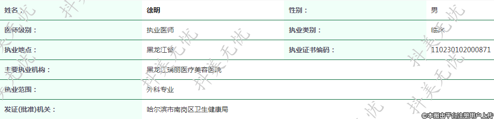 主要執(zhí)業(yè)機構(gòu):黑龍江瑞麗醫(yī)療美容醫(yī)院