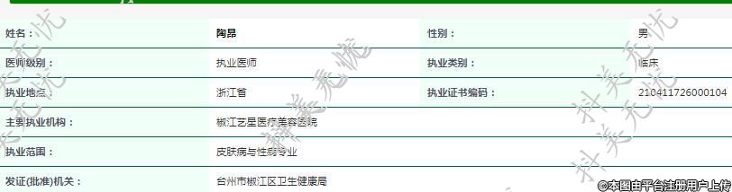 主要執(zhí)業(yè)機構(gòu):椒江藝星醫(yī)療美容醫(yī)院
