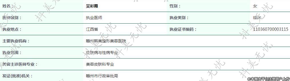 主要執(zhí)業(yè)機構(gòu):贛州韓美整形美容醫(yī)院