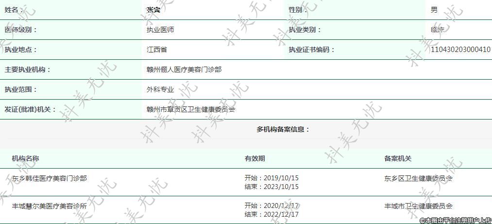 主要執(zhí)業(yè)機(jī)構(gòu):贛州儷人醫(yī)療美容門(mén)診部