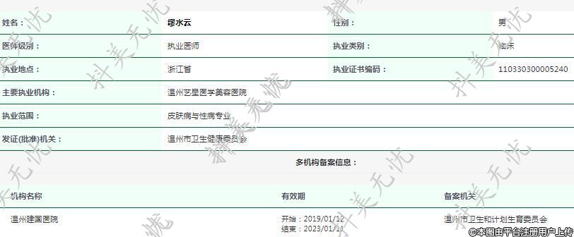 主要執(zhí)業(yè)機(jī)構(gòu):溫州藝星醫(yī)學(xué)美容醫(yī)院
