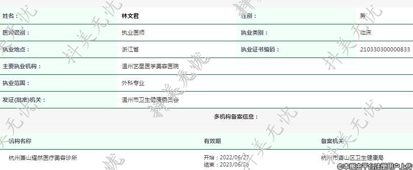 主要執(zhí)業(yè)機構(gòu):溫州藝星醫(yī)學美容醫(yī)院