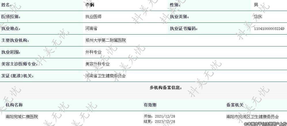 南陽宛城仁康醫(yī)院執(zhí)業(yè)醫(yī)師 -
