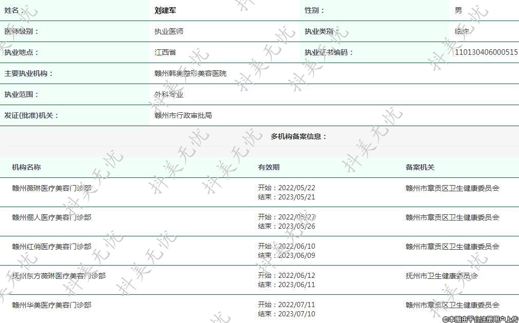 主要執(zhí)業(yè)機構(gòu):贛州韓美整形美容醫(yī)院