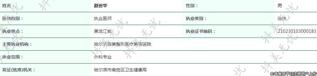 主要執(zhí)業(yè)機(jī)構(gòu):哈爾濱雅美整形醫(yī)療美容醫(yī)院