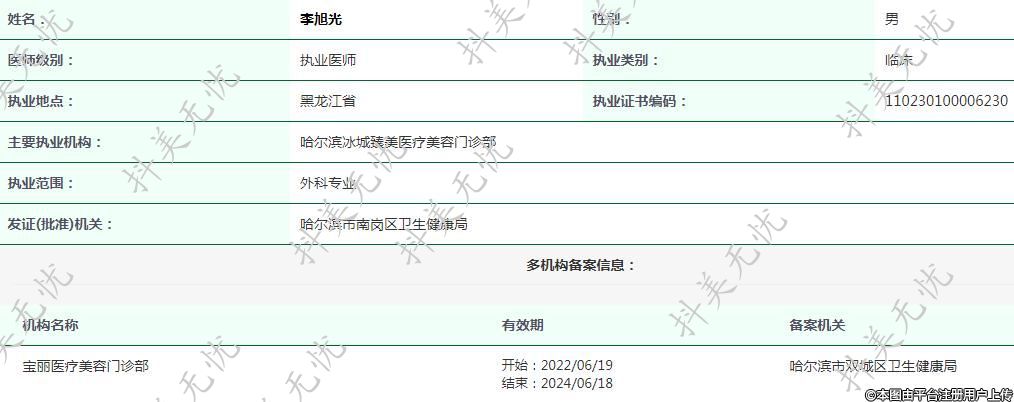 主要執(zhí)業(yè)機構(gòu):哈爾濱冰城臻美醫(yī)療美容門診部
