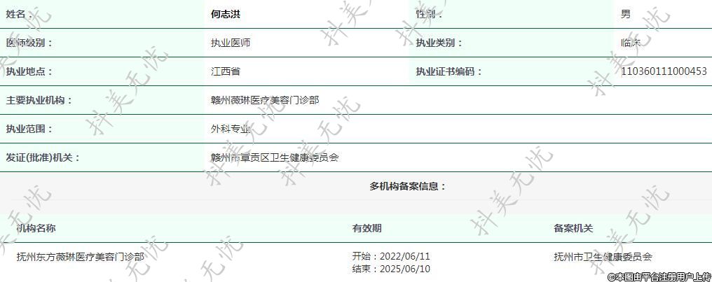 主要執(zhí)業(yè)機(jī)構(gòu):贛州薇琳醫(yī)療美容門診部