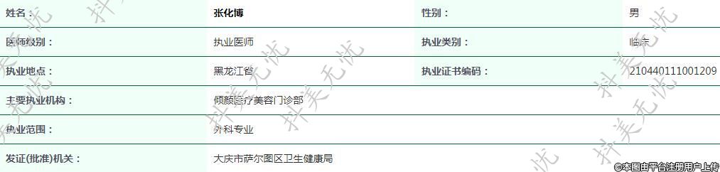 現(xiàn)任大慶傾顏執(zhí)業(yè)醫(yī)師