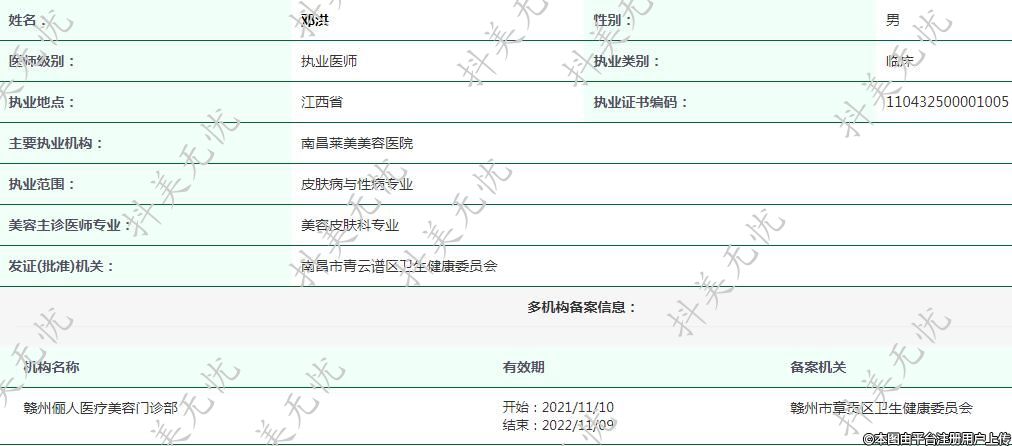 主要執(zhí)業(yè)機構(gòu):南昌萊美美容醫(yī)院