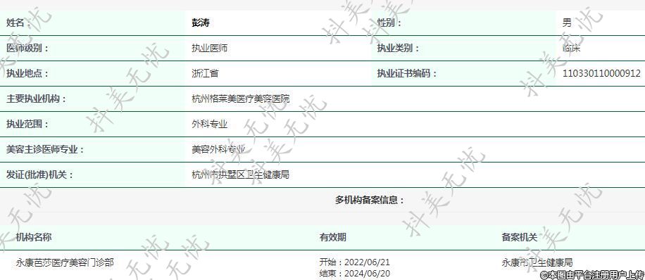 主要執(zhí)業(yè)機(jī)構(gòu):杭州格萊美醫(yī)療美容醫(yī)院