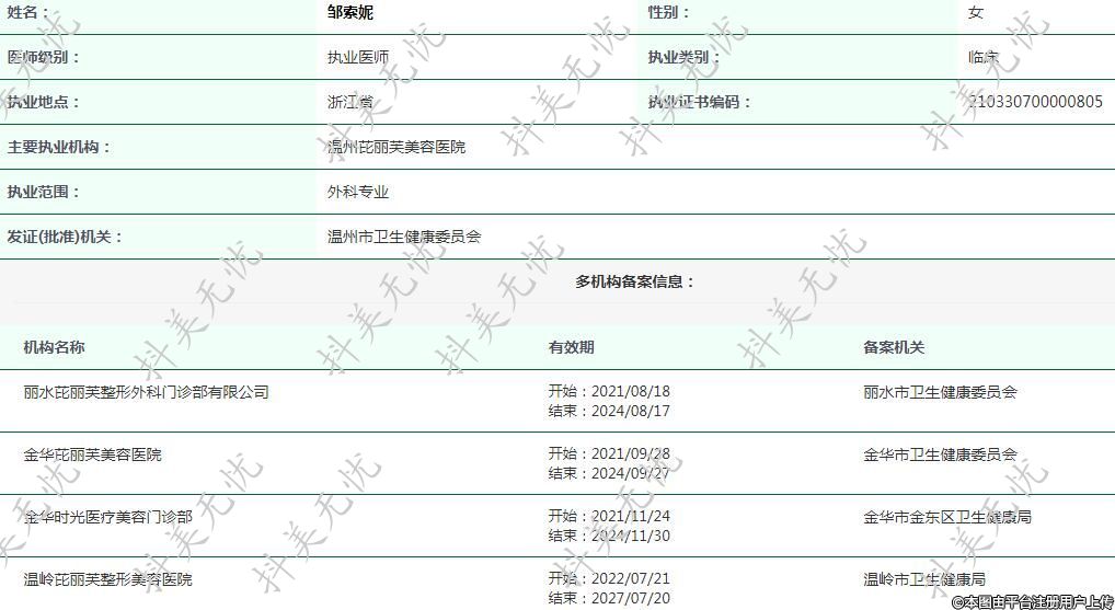溫州芘麗芙醫(yī)療美容執(zhí)業(yè)醫(yī)師