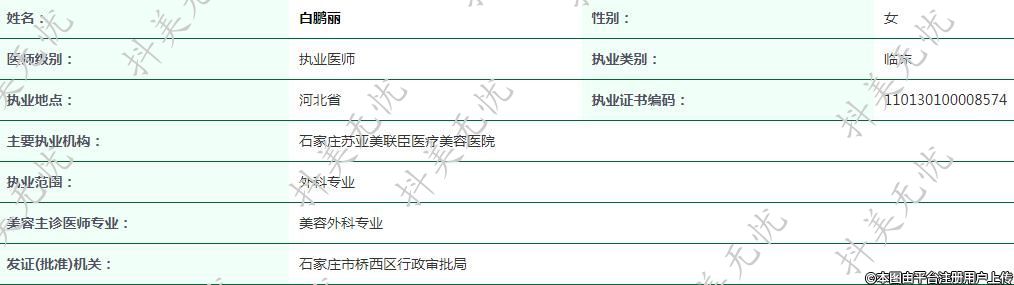 主要執(zhí)業(yè)機構:石家莊蘇亞美聯(lián)臣醫(yī)療美容醫(yī)院