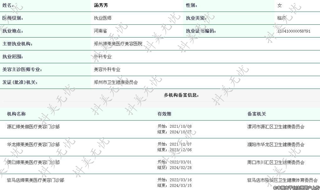 駐馬店締萊美執(zhí)業(yè)醫(yī)師 -