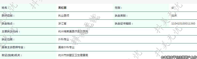 主要執(zhí)業(yè)機(jī)構(gòu):杭州格萊美醫(yī)療美容醫(yī)院