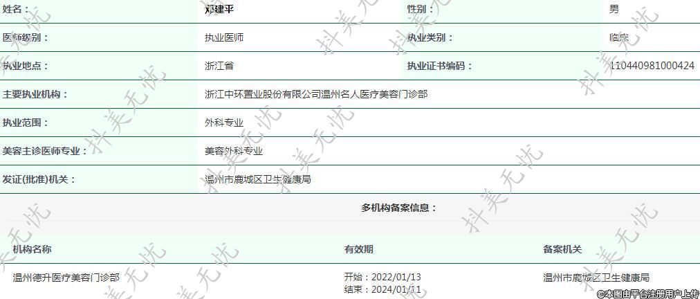 溫州名人醫(yī)療美容執(zhí)業(yè)醫(yī)師