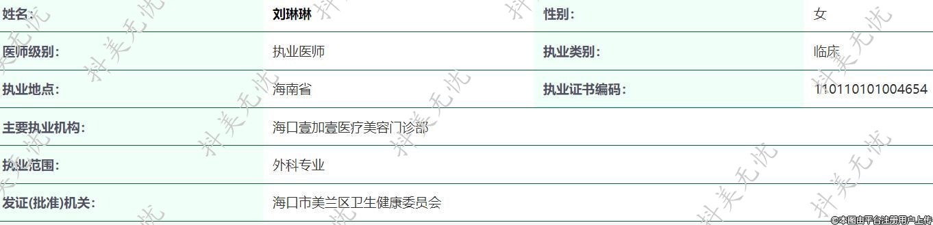 主要執(zhí)業(yè)機(jī)構(gòu):??谝技右坚t(yī)療美容門診部