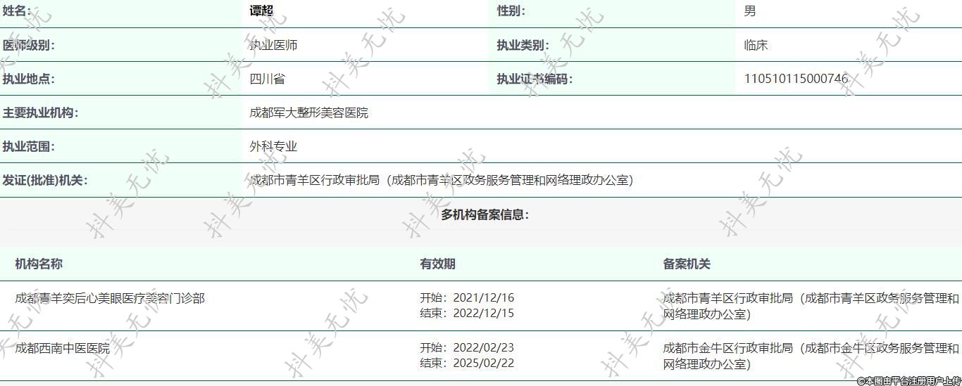 主要執(zhí)業(yè)機(jī)構(gòu):成都軍大整形美容醫(yī)院