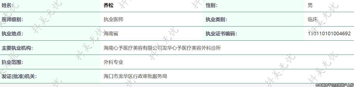 主要執(zhí)業(yè)機(jī)構(gòu):海南心予醫(yī)療美容有限公司龍華心予醫(yī)療美容外科診所