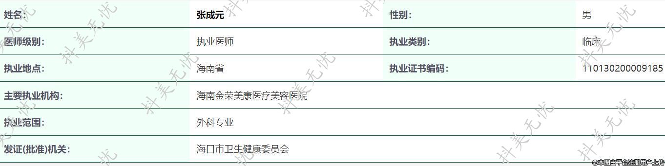 主要執(zhí)業(yè)機(jī)構(gòu):海南金榮美康醫(yī)療美容醫(yī)院