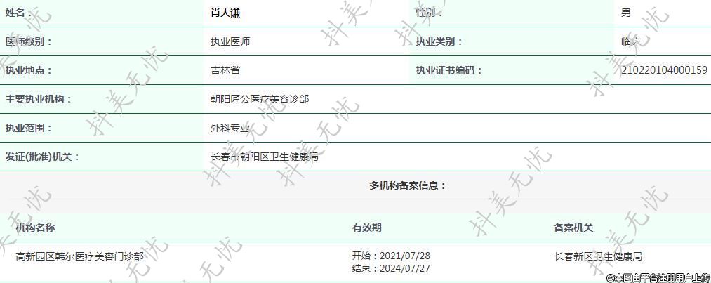 現(xiàn)任長春匠公醫(yī)療執(zhí)業(yè)醫(yī)師