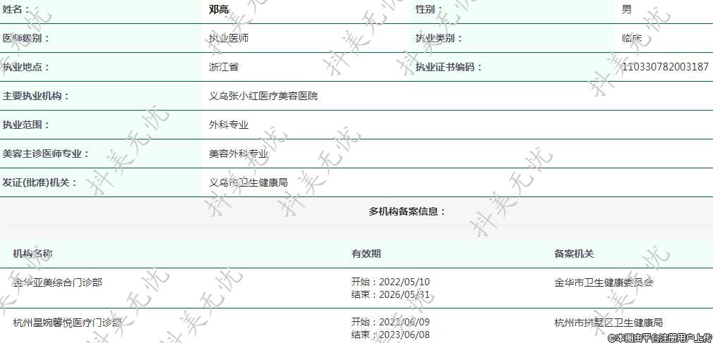 金華亞美醫(yī)療美容執(zhí)業(yè)醫(yī)師