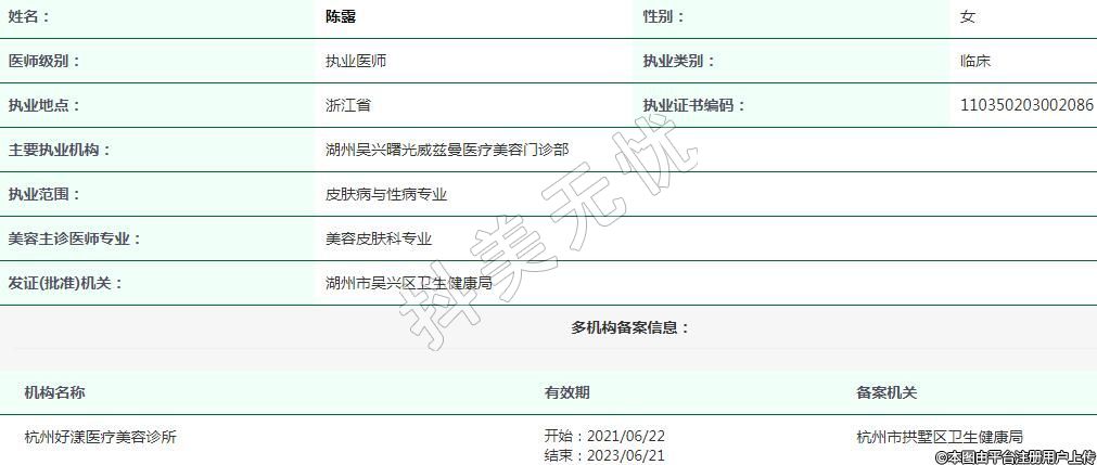 主要執(zhí)業(yè)機(jī)構(gòu):湖州吳興曙光威茲曼醫(yī)療美容門診部