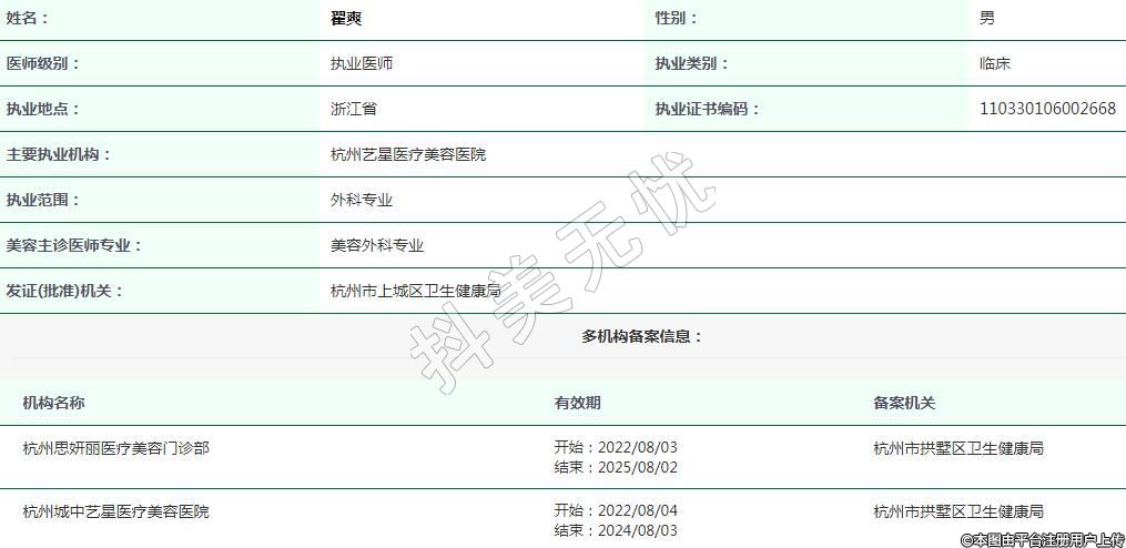 杭州藝星醫(yī)療美容執(zhí)業(yè)醫(yī)師