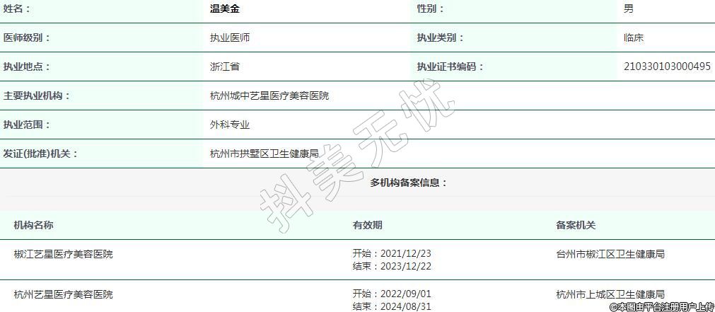 杭州藝星醫(yī)療美容執(zhí)業(yè)醫(yī)師