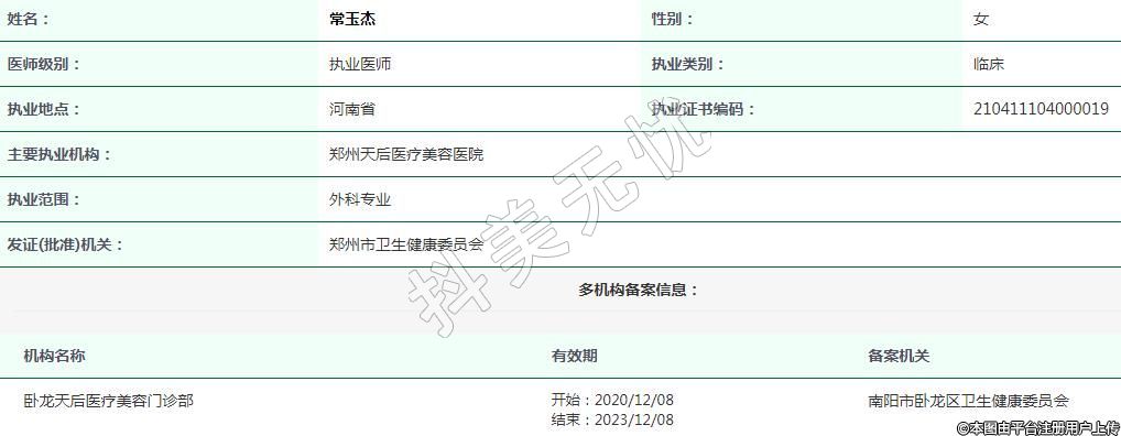主要執(zhí)業(yè)機構:鄭州天后醫(yī)療美容醫(yī)院