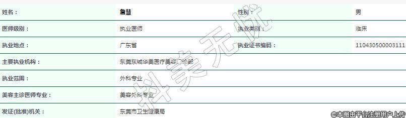 主要執(zhí)業(yè)機構:東莞東城華美醫(yī)療美容門診部