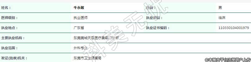 主要執(zhí)業(yè)機構(gòu):東莞莞城天后醫(yī)療美容門診部